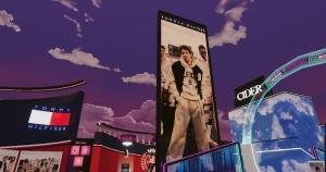 Вдоль спиралевидных стен в пространстве Auroboros были развешаны изображения из Instagram, а Tommy Hilfiger разместил большие рекламные щиты с изображениями своей кампании. Они казались особенно четкими и привлекательными на фоне Decentraland в формате 3D с низким разрешением.